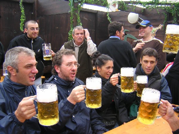 brindisi in lingua danese-ostrogota consumando un po’ insoddisfatti gli ultimi Maβ, …… quest’anno siamo più fradici fuori che dentro!
