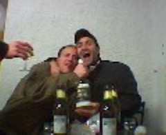 coppa è una bottiglia di dozzinale grappa Williams alla pera che Avanzo divide