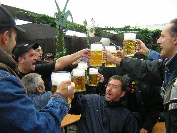 brindisi in lingua danese-ostrogota consumando un po’ insoddisfatti gli ultimi Maβ, …… quest’anno siamo più fradici fuori che dentro!